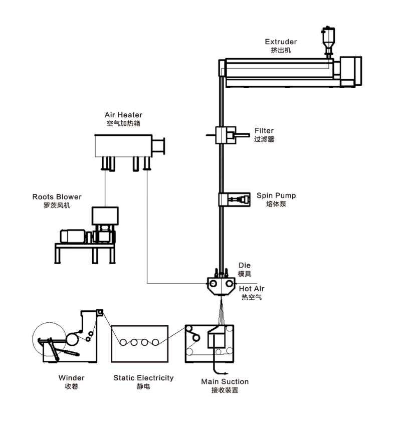 熔噴單柱油壓機換網器被再生利用于熔噴布主產地線中,其影響是:將熔體中的不溶物過濾清潔掉,以禁止梗塞噴絲孔。
